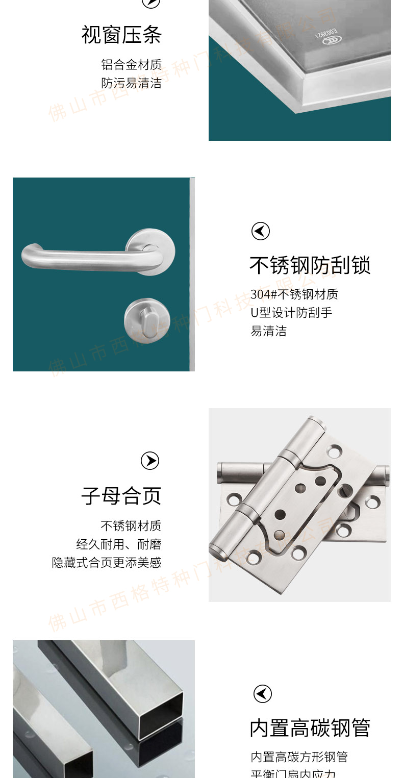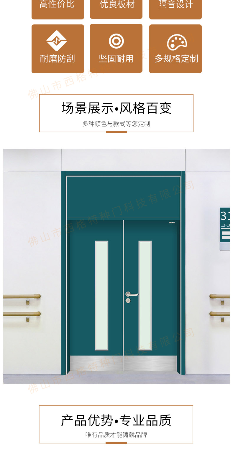 產品簡介:chnsige西格特種門,專業生產醫院門,醫院診室門,醫院辦公室門,醫院衛生間門,木質醫院門,鋼質醫院門,多鐘款式、顏色,尺寸可定制。